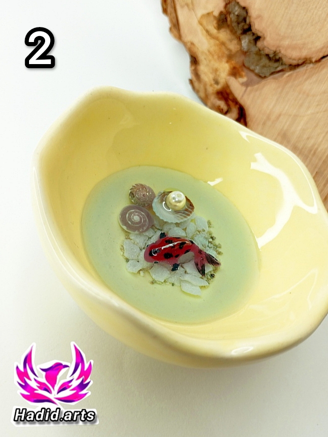 یک تیر و سه نشان، شما با خرید یک ظرف ماهی هم یک دکوری شیک و ترند در خانه خود دارید هم یک جاعودی خاص با ماهی جاودان و هم یک جا جواهراتی با خرید یک محصول شما ۳محصول خاص و کاربردی به خانه های خود میبرید.همچنین میتواند یک هدیه ماندگار و شیک برای دوستان شما باشید. جنس بدنه سرامیکی بوده و سنگ و صدف طبیعی کار شده و ماهی و.. رزین هستند.