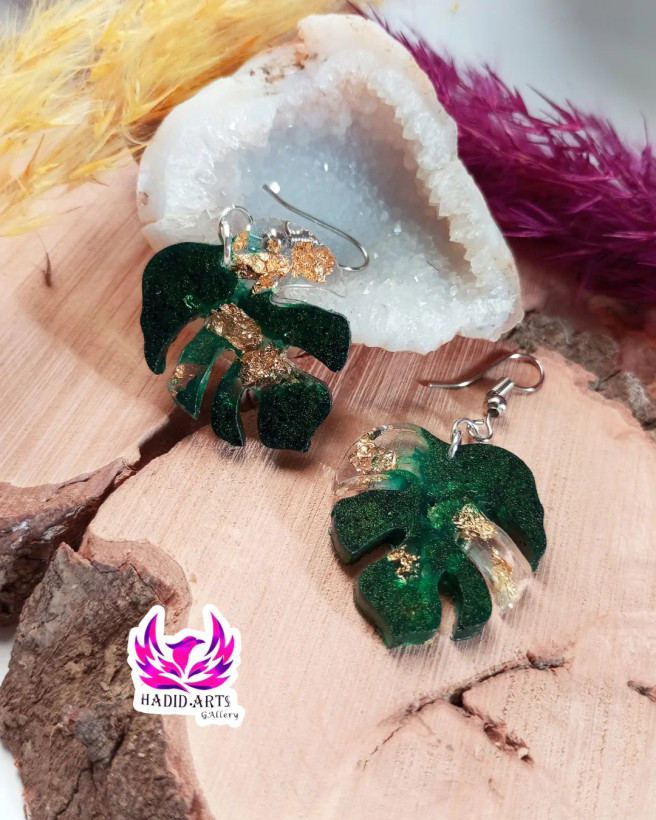 گوشواره برگ انجیری مدل ورق طلا رزینی
