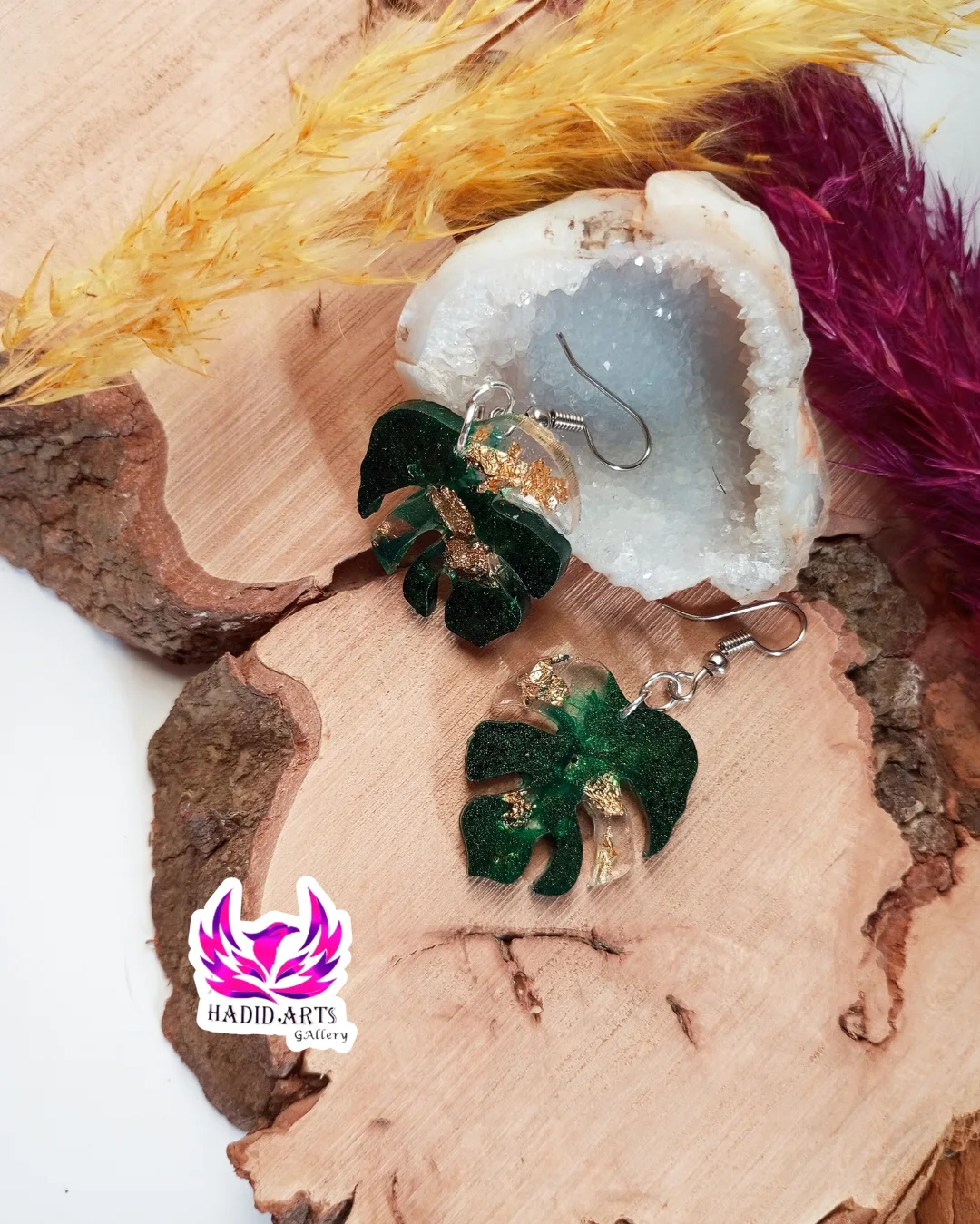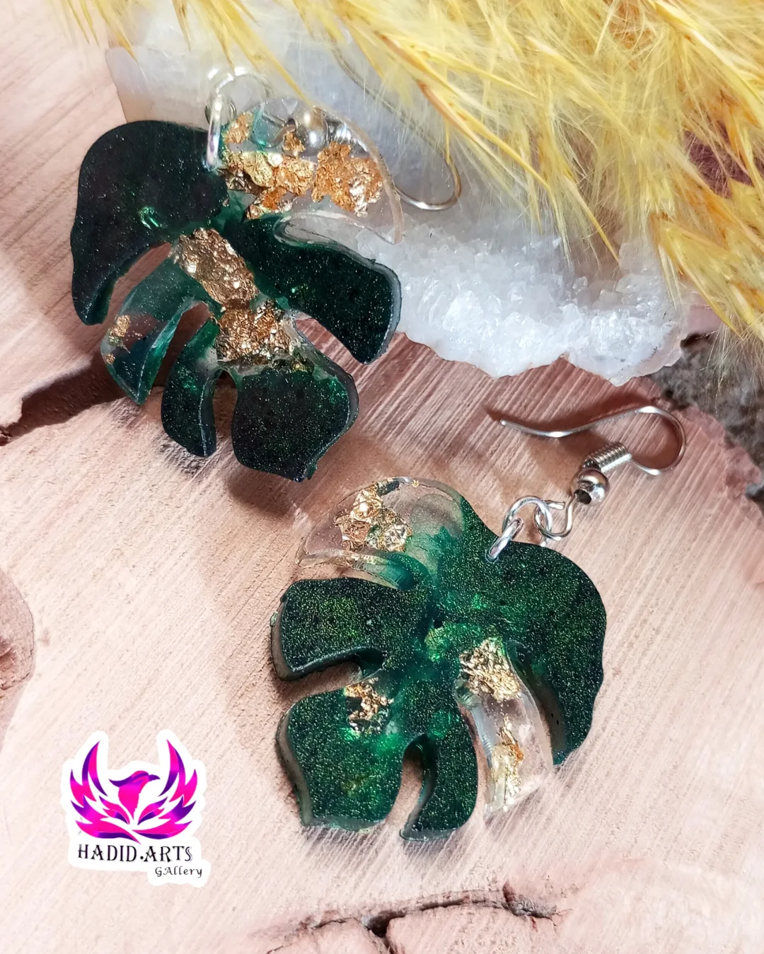 گوشواره برگ انجیری مدل ورق طلا رزینی