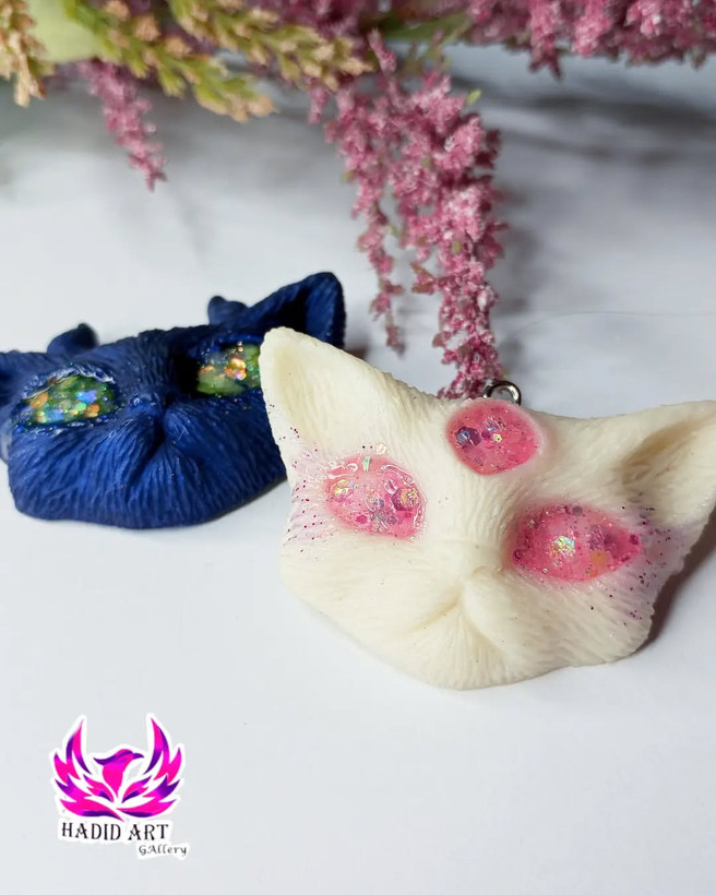 گربه شاخدار سورمه ای و گربه جادوگر سفید جنس کار رزین و برای جلوه بیشتر از اکلیل برای چشم کار شده ، هدیه ای جذاب برای خاص پسندان.