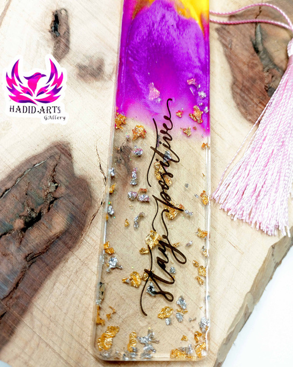 جنس کار رزین مرطوب و شفاف و منگوله ابریشمی + متن انگیزشی برای احساسی بهتر به خودتون و اشتیاقی برای کتاب خواندن.