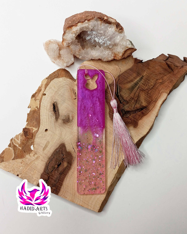 جنس کار رزین کاملا شفاف و زیبا کار شده با اکلیل وارداتی صورتی و منگوله آویز ابریشمی برای تزیین.