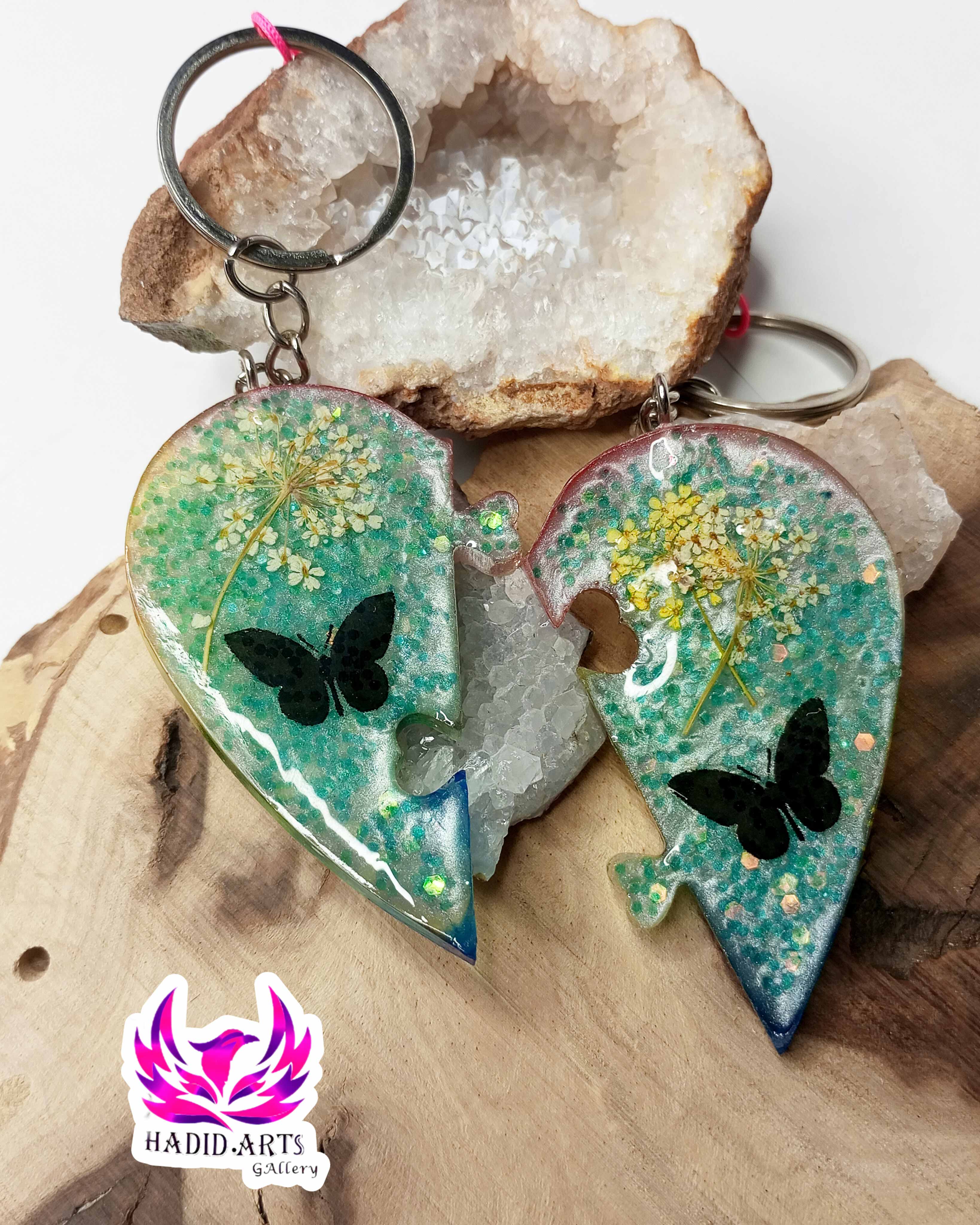 سرکلیدی ست قلب پازلی با گل شوکران رزینی